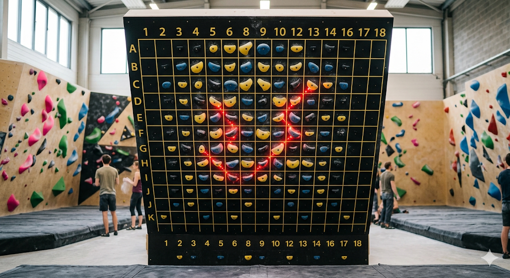 문보드와 비슷하지만, 홀드 전체에 화려한 조명이 들어오고 벽의 각도를 자유롭게 조절할 수 있다는 장점이 있습니다. 입문자도 각도를 조절해 도전해 볼 수 있어 인기가 많습니다!
